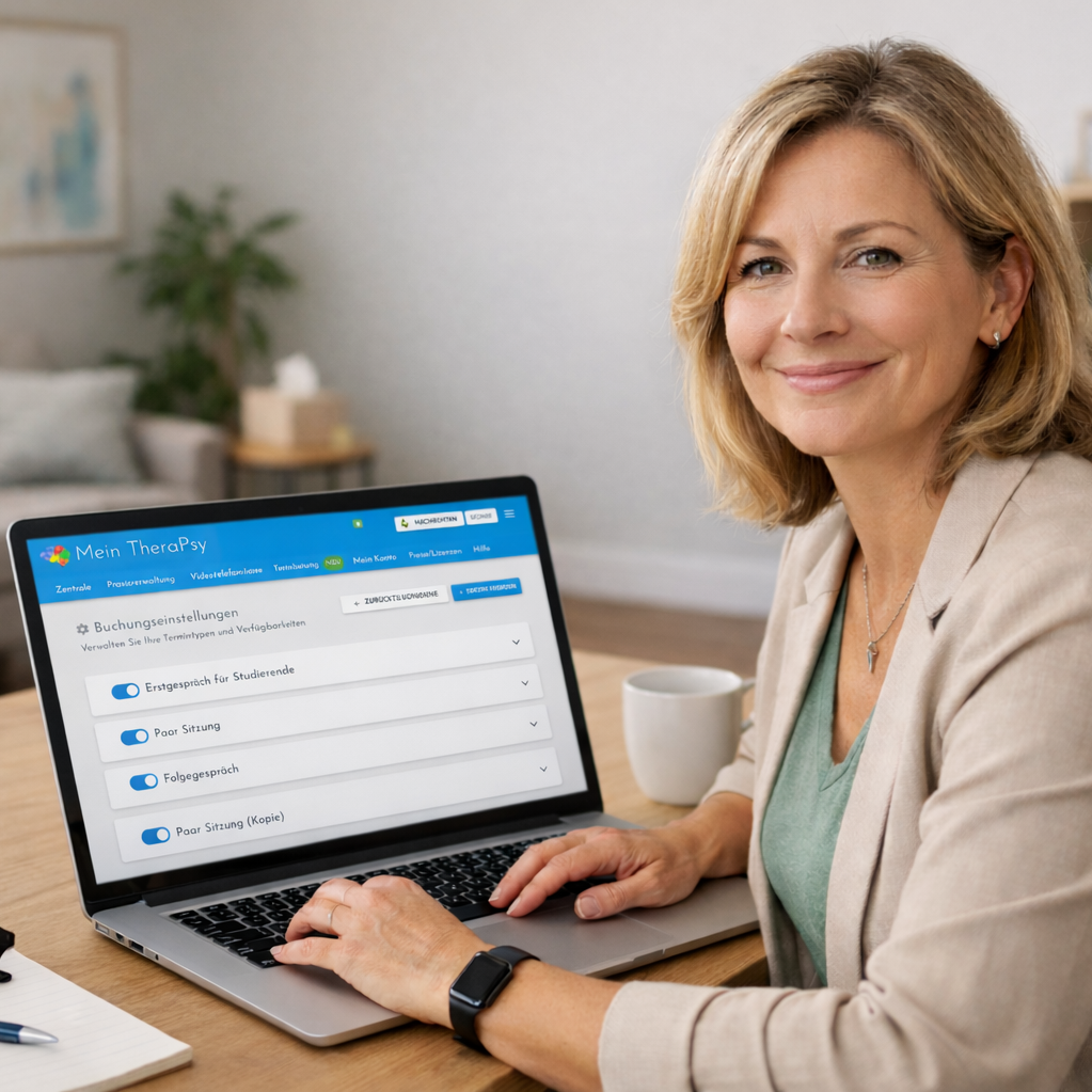 Mit TheraPsy Bookings sparst du dir Verwaltungsaufwand und machst es deinen Klient*innen leicht, Termine direkt online zu buchen – wann immer sie möchten.